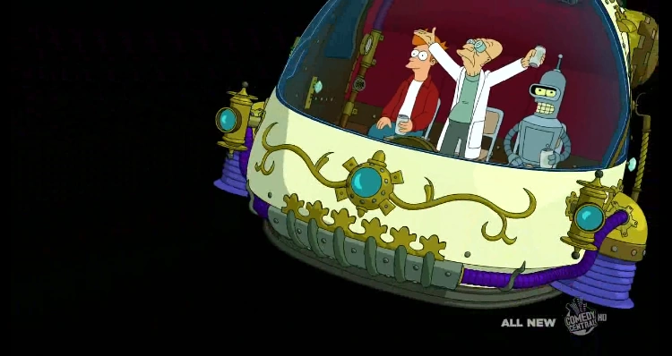 The end of the original Universe with Bender, Fry, and Professor Farnsworth, the time machine, and possibly the Nibblonians being the only things in existence.