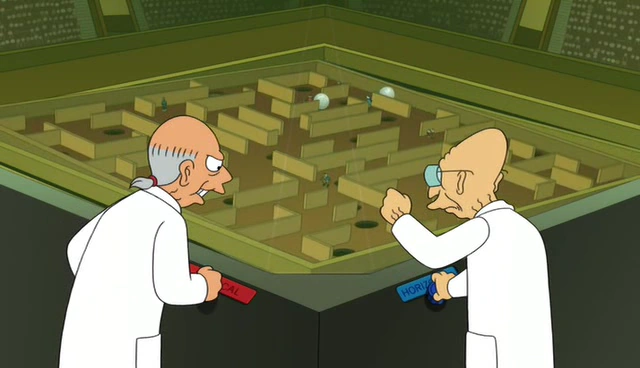 Deathball is a very dangerous sport. People could die, hence the name. It is a labyrinth with human interference. It has players go in the maze and try to push giant balls into giant holes to score points while course is tilted vertically and horizontally by the leader of each respective team. Professor Farnsworth and Wernstrom were the leaders of their teams when the Planet Express Crew played against Wernstrom's graduate students in 3008 in order to resolve a dispute.