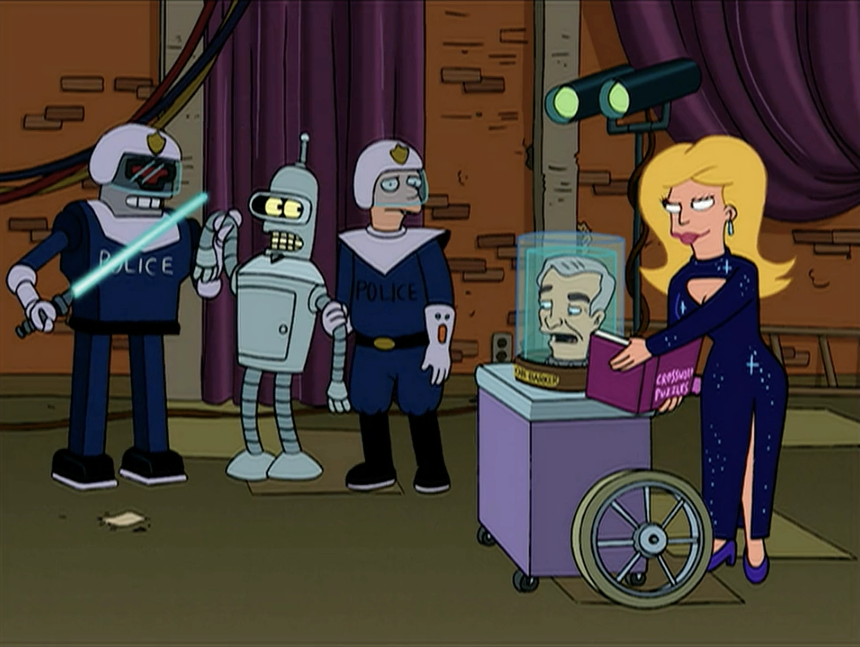 While working at Curvetti Bros. Bending Plant, Bender meets and briefly dates Flexo's ex-wife Angleyne. Once Bender discovers that Angleyne used to be married to Flexo, Bender decides to impersonates Flexo and for the second time, Flexo is punished for Bender's behavior when the Robot Mafia drops a large, unbendable metal beam onto Flexo, crushing him. This could have killed him had he been trapped under it for an entire year, but Bender rescues him. Flexo then gets back together with Angleyne and the two have sex "right there on the factory floor", apparently with Bender still in the room.