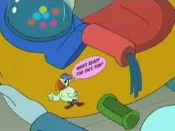 The Scooty-Puff, Jr. is replaced by the larger and more superior Scooty-Puff, Sr. during Fry's second, successful attempt at destroying the Infosphere.