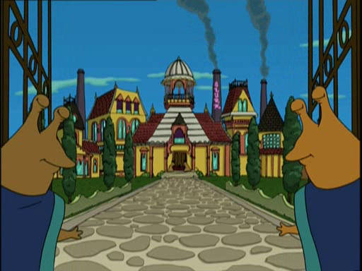 The Slurm Factory is a fake factory that was thought by the general public to produce Slurm. In reality, the factory is just a tourism place made to cover-up the true nature of Slurm. The Slurm is produced by the Queen's excrement underground. The Grunka Lunkas are little people who live in the factory. It is located on the planet Wormulon.