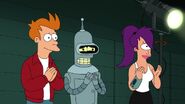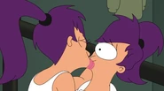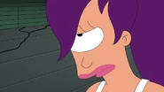 While hiding from Yivo, Leela remarks to Amy that she won't have to trim her "elbow talons" any more, implying that she has been trimming them throughout the series to appear more human. Her eye and elbow talons appear to be her only visible mutant traits.