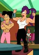 Later, she got upset when Zapp started dating her mom and believed it was all ploy. To that end, she threw herself at Zapp to seduced him but he resisted and voiced how his affections for her mother were real and got very close to marrying her but it didn't occur because her parents reconciled.[19]