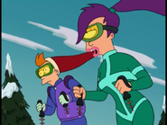 He was even attracted to her while she was disguised as a man, but this worried him on his sexuality. However, Leela beat him up and revealed her identity, as Zapp was pleased to see her, and he rejoiced at making sense of his attraction. Zapp was even willing to risk his life to save her during a fire in "Three Hundred Big Boys", showing he also cares for her well-being.