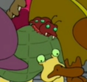 - The Vampire Slug is seen briefly as Nibbler first enters the Planet Express ship, on the turtle duck's back.